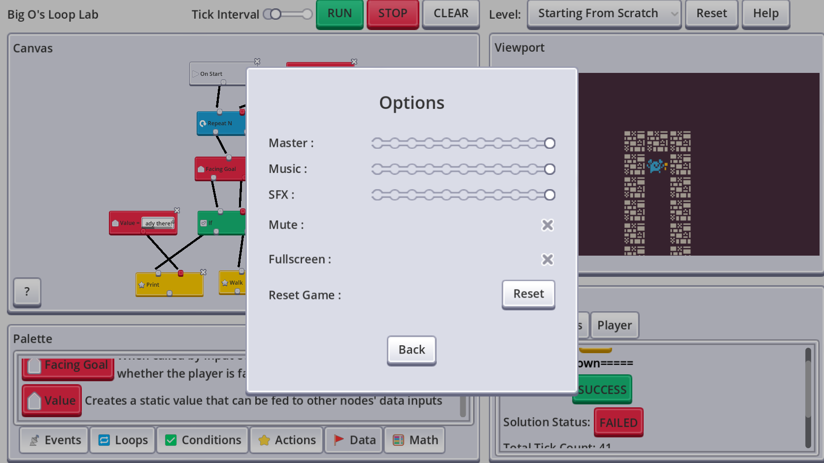 - The game contains a very experimental visual-programming language, custom interpreter, and puzzle game execution system, all developed entirely from scratch within the short jam window